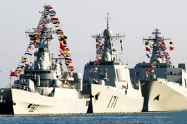 171海口舰与998昆仑山舰气势宏伟