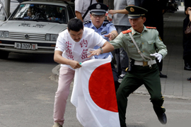 北京日本大使馆外民众抗议日本签署“购岛”协议