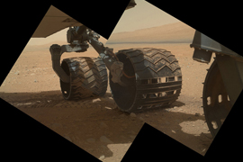 高清:美国好奇号探测器在火星“自恋”玩自拍