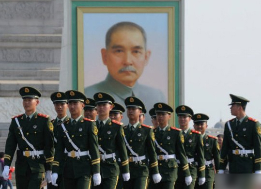 毛泽东时代也曾把孙中山画像竖到天安门广场上,那时是统战之需,因为当时的台湾地区领导人多以中山传人或学生自居,而且,广场内同时竖起的还有马克思、恩格斯、列宁、斯大林等4位导师的画像。