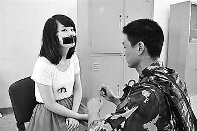 “演戏也得来真格的,你就牺牲一次吧”,特警队员很较真,亲自为女主角贴上了胶布。