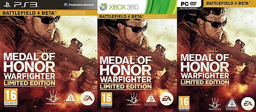 一些网络零售商刚刚揭露了最新游戏《荣誉勋章 战争斗士》的封面艺术图。这个最新的封面上展示着戴着墨镜的英国大兵,另外封面中还加入了一个有关《战地4》BETA测试的条幅。不知相比起来,玩家更喜欢哪个呢?