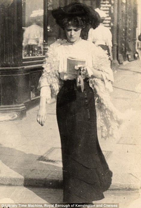 沿着肯辛顿教堂街道行走的购物女孩(拍摄于1906年9月8日)。