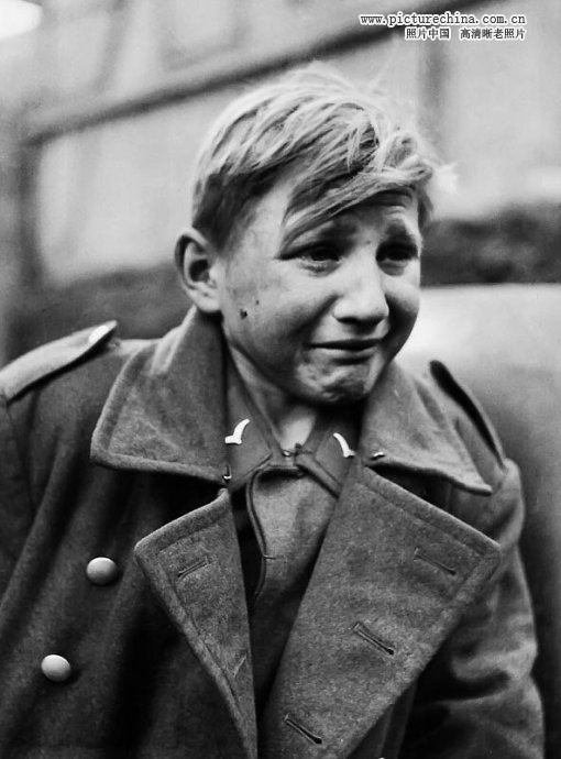 1945年4月,德国。在1945年4月被美军第三军俘虏的14岁德国青少年,希特勒青年团的士兵。