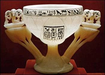 愿望杯,这个杯子发现在墓室的前厅,有可能是盗墓者丢弃在此的。杯壁的外沿刻着一句咒语:如果你愿意把你的脸朝向北风,数年之后你将会看到幸福。