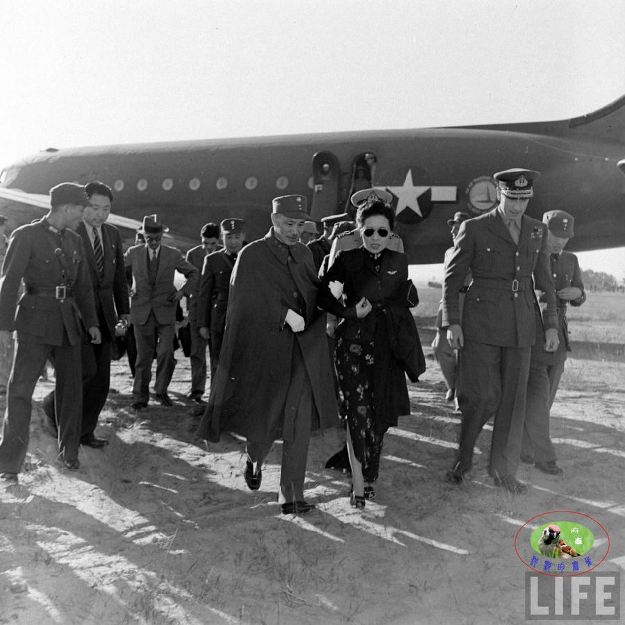 蒋介石夫妇与前来迎接的蒙巴顿勋爵