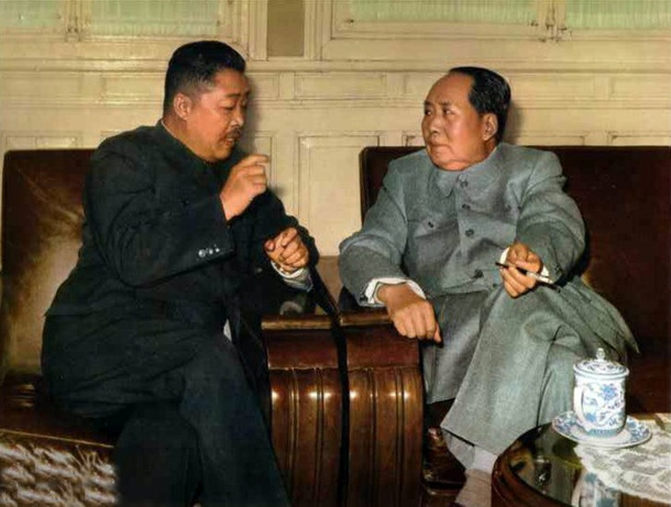 贺龙是“文革”中最先遭到冲击的元帅,1968年3月26日贺龙病倒住院,同年6月9日,贺龙再次住院,6小时后去世,贺龙死后没有哀乐,没有花圈,没有党旗,只有一条白床单。夫人薛明和子女都不知道他的骨灰存放何处,他被以王玉的名字悄悄火化。1975年6月9日,贺龙骨灰安葬仪式举行,军委办公厅和殡葬处轮流守灵,左臂戴着黑纱的周恩来一进大厅就大喊:薛明呀,我没有保住他呀!图为贺龙与毛泽东合影。