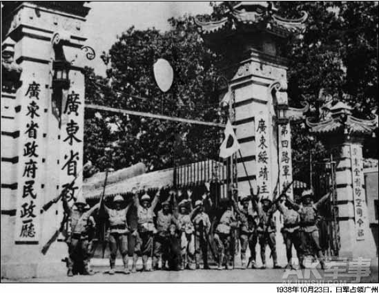 1938年10月23日,广东省政府门前刺眼的太阳旗。