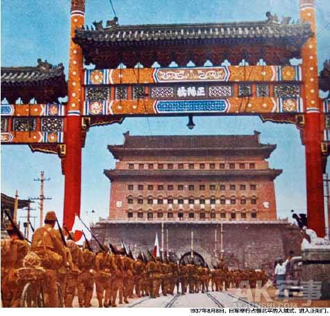 1937年8月8日,日军扛着太阳旗,进入北平。