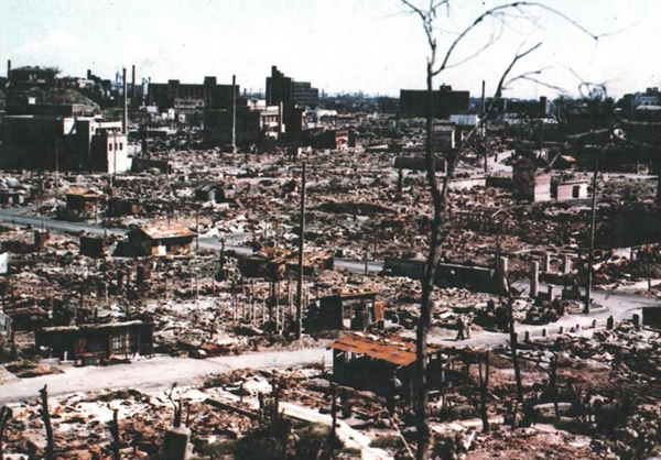 自1945年8月两颗原子弹分别投在广岛、长崎之后的半个多世纪中,人类至少面临了12次核危机,其中直接针对中国的就有5次。图为1945年广岛遭受原子弹轰炸后的废墟。(文字来源:《家庭导报》2010年3月19日第12版,原题:新中国经历的五次核危机)