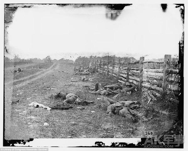150年前的照片:摄影师亚历山大•加德纳在安蒂特姆战役发生的Hagerstown Pike路上拍到南部同盟军的死亡士兵尸体。