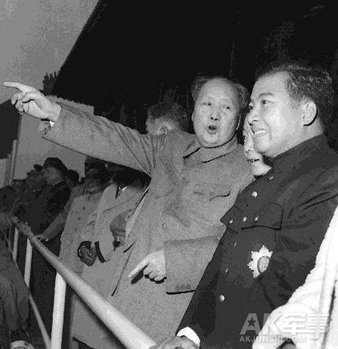 毛泽东热情的与西哈努克在天安门城楼交谈。