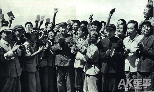1966年8月10日,毛泽东、林彪、周恩来和“红卫兵”在一起。