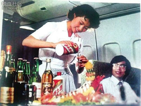 上海一位资深民航专家说,以前一些航班的头等舱确实配有茅台酒,“我是1974年参加工作的,飞机上大龙虾我没见过,但茅台酒是有的”。