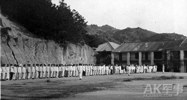 1922年,广东汕头,汕头学院学生在操场上的军训。