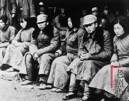 在苏北的一次战斗中,日军进行快速包抄,国军174师师部被打散,这三位军官及随军家属被日军俘虏。他们三对六位坐在台阶上,神情落寞。妻在前,夫在后,顺序而下。丈夫虽然身着毛领军大衣,是军中之官,却双眉紧锁,佝偻身躯,束手无策。
