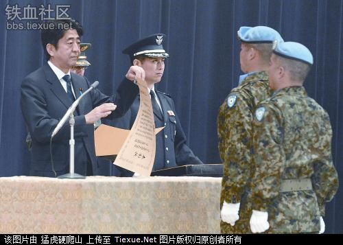 20日,日本首相安倍晋三向回国的戈兰高地维和自卫队递交政府奖状。安倍在仪式上称,近年“日本周边的安全保障环境更加严峻”,为此将修改《防卫计划大纲》,进一步加强日美同盟。
