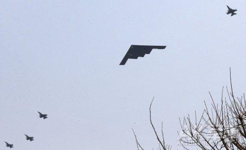 资料图:近期美韩联合演习中美军B-2轰炸机现身朝鲜半岛展示实力