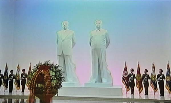 资料图:锦绣山太阳宫内金日成与金正日的雕像。