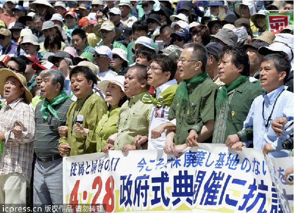 资料图:日纪念主权恢复日被冲绳批耻辱