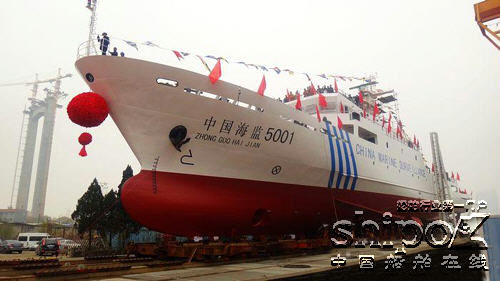 资料图:中国海监5001船满载排水量1470吨,续航能力超过5000海里,最大航速20节,自持力30天。配备可遥控音弹,可遥控双炮管压水炮。
