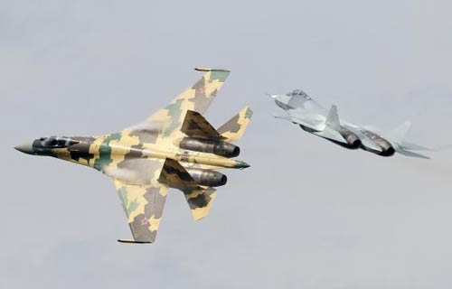 俄罗斯苏-35和T-50战斗机。(资料图)