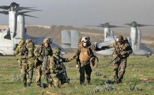 资料图:日本自卫队乘坐美军鱼鹰运输机进行夺岛演习