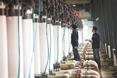 4月17日,曹妃甸,北控曹妃甸海水淡化有限公司车间内,两名巡视工人正记录汇报超滤系统各个读表的信息。2019年,北京有望喝上“脱盐”渤海水。