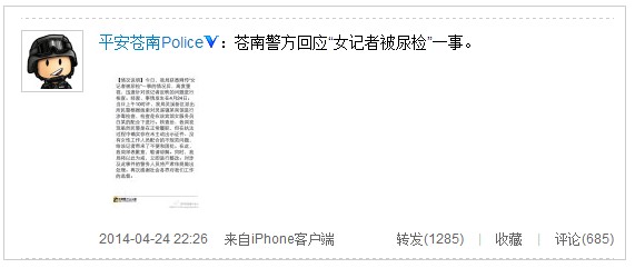 【苍南警方回应“女记者被警察查房验尿”事件】“核查后,我局发现虽然民警是在正常履职,但在执法过程中确实存在未主动出示证件、没有女性工作人员配合的不规范问题。在此,我局深表歉意,敬请谅解。同时将以此为戒,立即进行整改。对涉及此事件的警务人员将严肃依规作出处理。”bBA老兵苑
