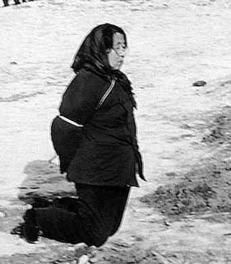 一名法警上前将戴在她头上的围巾解开,散披在她的肩上。此刻刑场上一片寂静,除少数摄影记者外,其他人一律退到警戒线以外。