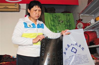 李金标案二审时,愤怒的受害者家属在法庭上殴打李金标姐姐及哥哥。5月10日下午,李金标的姐姐李水英拿着事后去医院拍的片子。