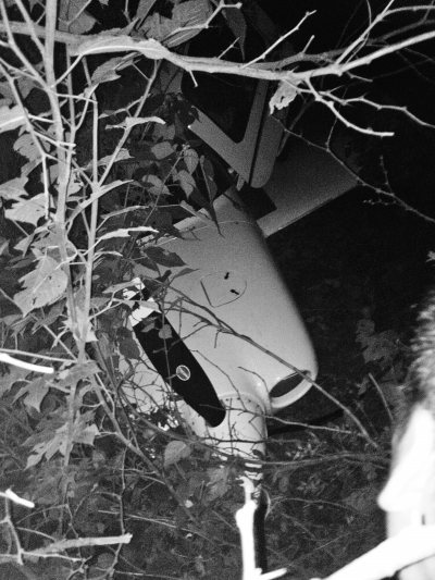 飞机的一只机翼斜挂在树上(网友供图)uTP老兵苑
