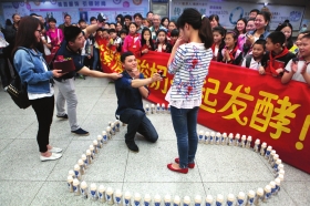 株洲"酸奶哥"用520瓶酸奶求婚 女友:很惊喜