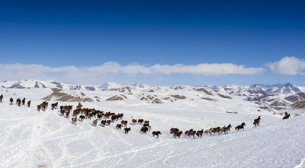 伊犁天山浩瀚雪原现万马奔腾壮景
