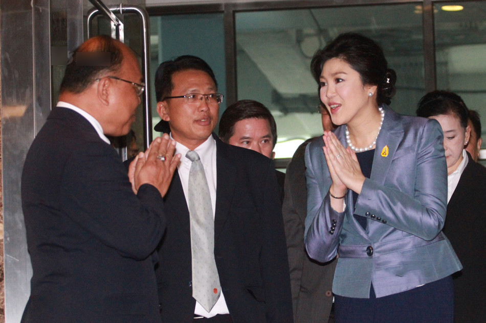 2014年5月7日,泰国宪法法院裁定,泰国看守政府总理英拉滥用职权罪名成立,将被解除总理职务。图为5月6日,在泰国首都曼谷,泰国看守总理英拉西那瓦到达泰国宪法法院。