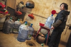 饮用水水源变质,娄底三元村民喝桶装水6年,维权招数使尽,最后拉横幅到环保局及区政府门口,请领导下河游泳。
