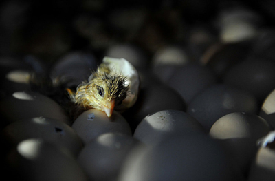 4月16日,广东清远,因受禽流感的影响,太和镇曹永坚的孵化场从隔天出10万羽鸡苗变成5万羽。为了降低损失,有3万只鸡苗只能做烫死处理。