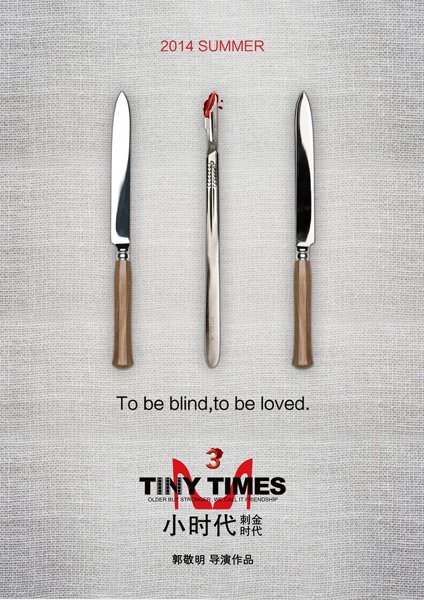 这款首度亮相的“刀光版”概念海报,“刀光”“血影”颇具映射意味。海报主视觉为两把餐刀、一把手术刀排列构成罗马数字“Ⅲ”,传递电影《小时代》启动第三部。三把质感锐利的刀具刀光凛冽,寒意十足。刀尖带血的手术刀处在中央,鲜明而突出,带给人“刺痛”、“沉重”之感,暗含剧情青春碰撞现实后的伤痛气息,与1、2部中美好青春年华形成反差。