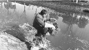 1月21日下午,有市民投诉称,在南京江宁区丰泽路附近,有黑心菜贩把批发来的干大蒜叶放在一条污水河里浸泡,从而增加重量。最让市民担心的是,一旦这些蔬菜进入菜市场,这些经过污水浸泡的菜又会流向市民的餐桌上。