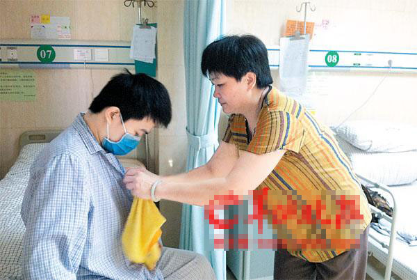 身高1.8 米的大男孩李伟清现在连擦身都得靠家人帮他
