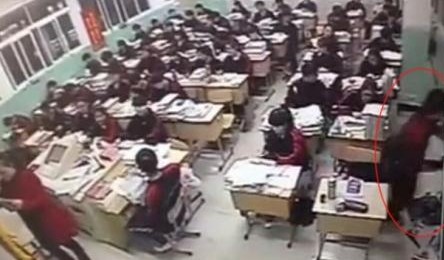 突然的意外吓傻了同班同学们,教室里响起阵阵尖叫,靠窗一排的几个女生吓得抱在了一起。随后,后排冲上来两个男生,和讲台上一名女衣老师在窗口查看一番后,两名男生冲出教室,向楼下跑去。