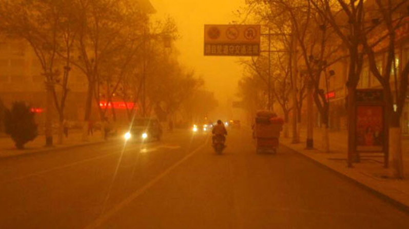 甘肃酒泉遭特强沙尘暴袭击 黄沙漫天