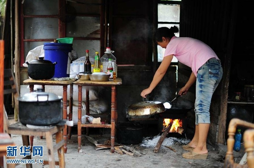 一名永兴岛渔民在厨房做晚饭