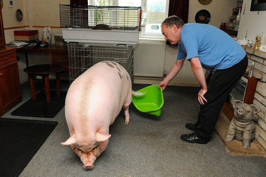 据报道,这头猪是夫妇两人在19个月之前花了250英镑(约合2500元人民币)从网上买的,当时它的体重只有0.3公斤。随后,夫妇两人就一直精心照顾它,给它吃宠物餐、香蕉、草莓,每天还会喂它一定量的鱼肝油,并亲切地给它起名叫“宝贝”。