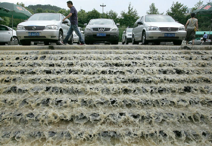 2012年7月31日,杭州,曙光路求是路路口水管爆裂,周边几百平米的道路全都积满了水。斜对面地势较低的黄龙体育中心周边几家商铺差点被淹,至少有5辆停在路边的车子被淹,马路两边的曙光社区、曲院社区几千户居民全部停水,求是社区为配合抢修也将停水。记者从施工单位了解到,施工预计持续到明日(8月1日)凌晨6点。
