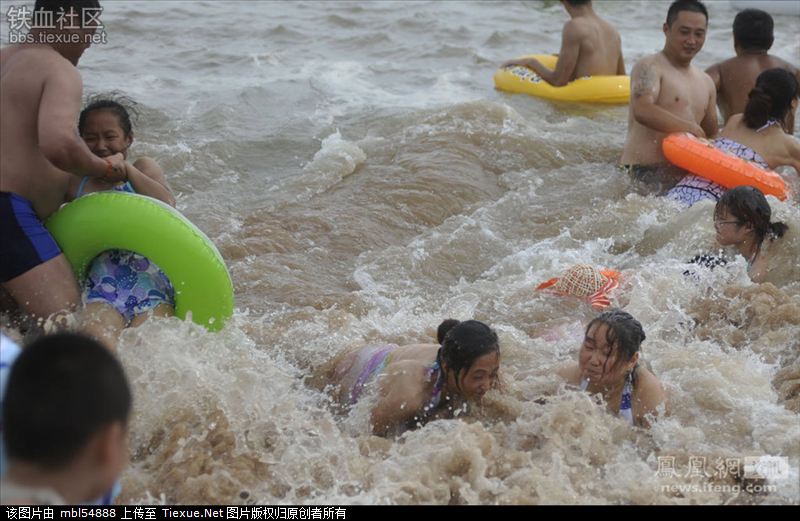 海水浴场掀起巨浪,众多市民和游客在巨浪游泳。