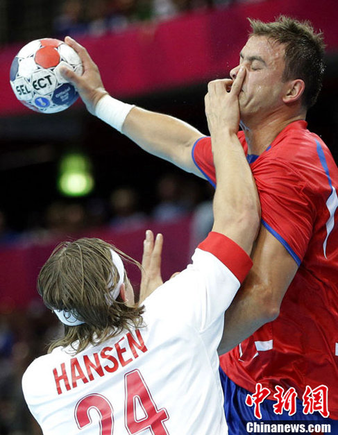 当地时间8月2日,伦敦奥运会男子手球小组赛,丹麦对阵塞尔维亚。