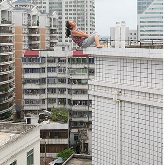 8月14日上午7时许,广东湛江一栋商住楼楼顶,一名妇女欲跳楼自杀。当时,该妇女坐在楼顶天台围栏上,用脚勾着栏杆,重心向外倾斜,还不时大声哭闹。