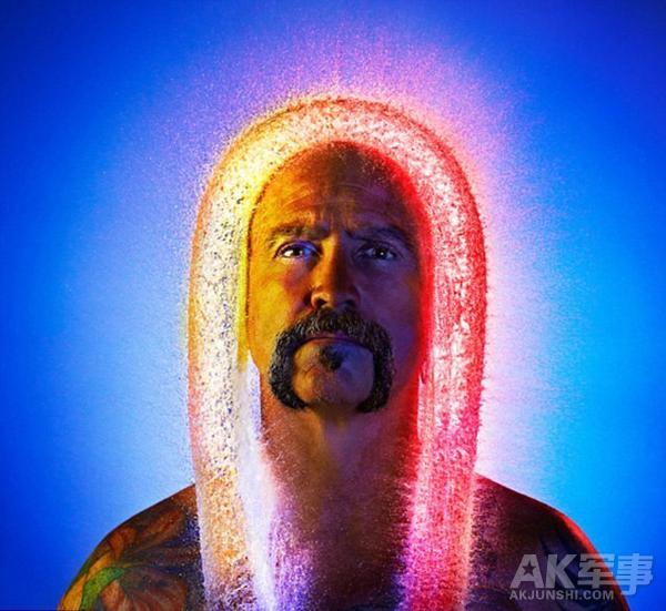 摄影师创意:水球在光头男子头顶爆裂如假发