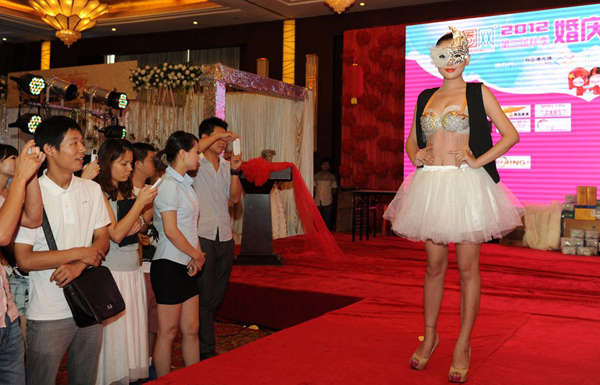 8月31日,江西省南昌市,南昌婚礼博览会上,两件价值百万的镶嵌了一百多颗钻石的内衣亮相南昌,吸引众人围观。